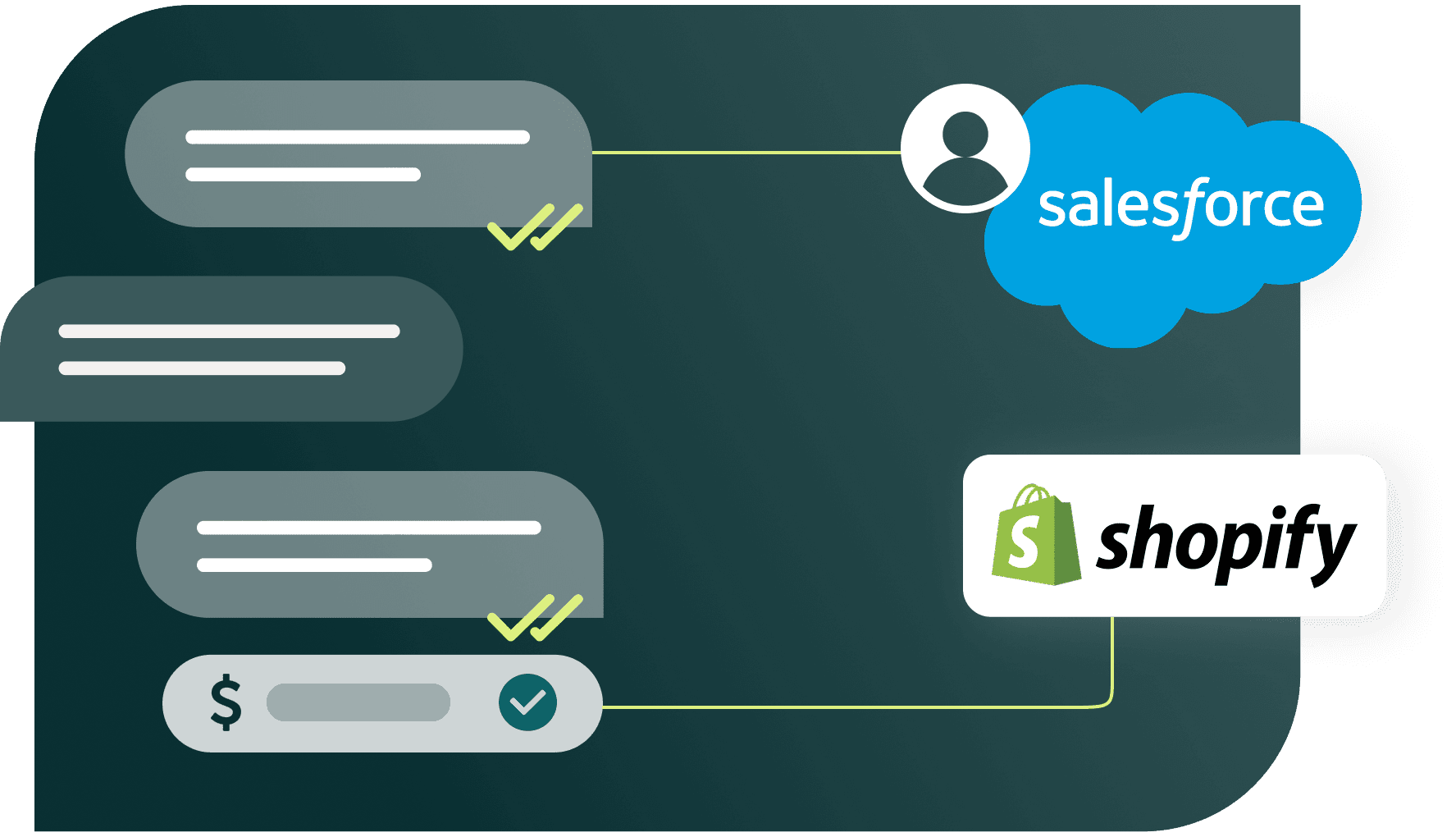 Connect WhatsApp chats to Shopify purchases or Salesforce leads